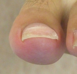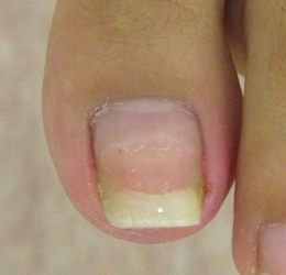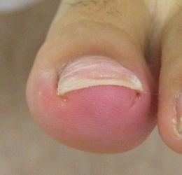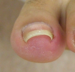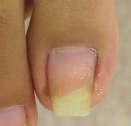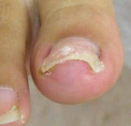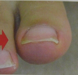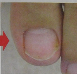 巻き爪の程度と終了までの予想期間を返信いたします。