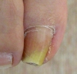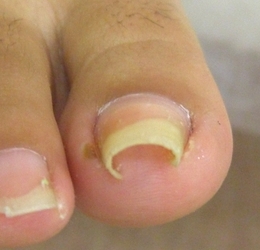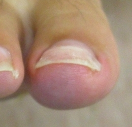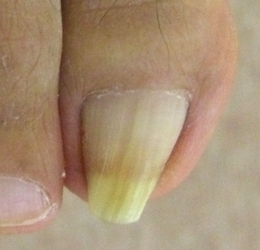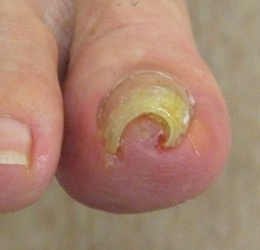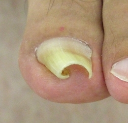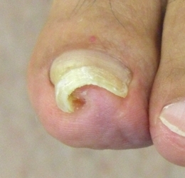 | 80代の男性です。重度の巻き爪ですが、爪が柔らかいタイプで矯正が掛けやすく4回の矯正で終了としました。 |